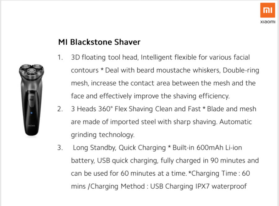 For some personal care, you can get the Xumei Electric Shaver for Php1,699. The Xiaomi Mi Blackstone Shaver for only Php790 and the Mi Baby Hair Trimmer for Php990.