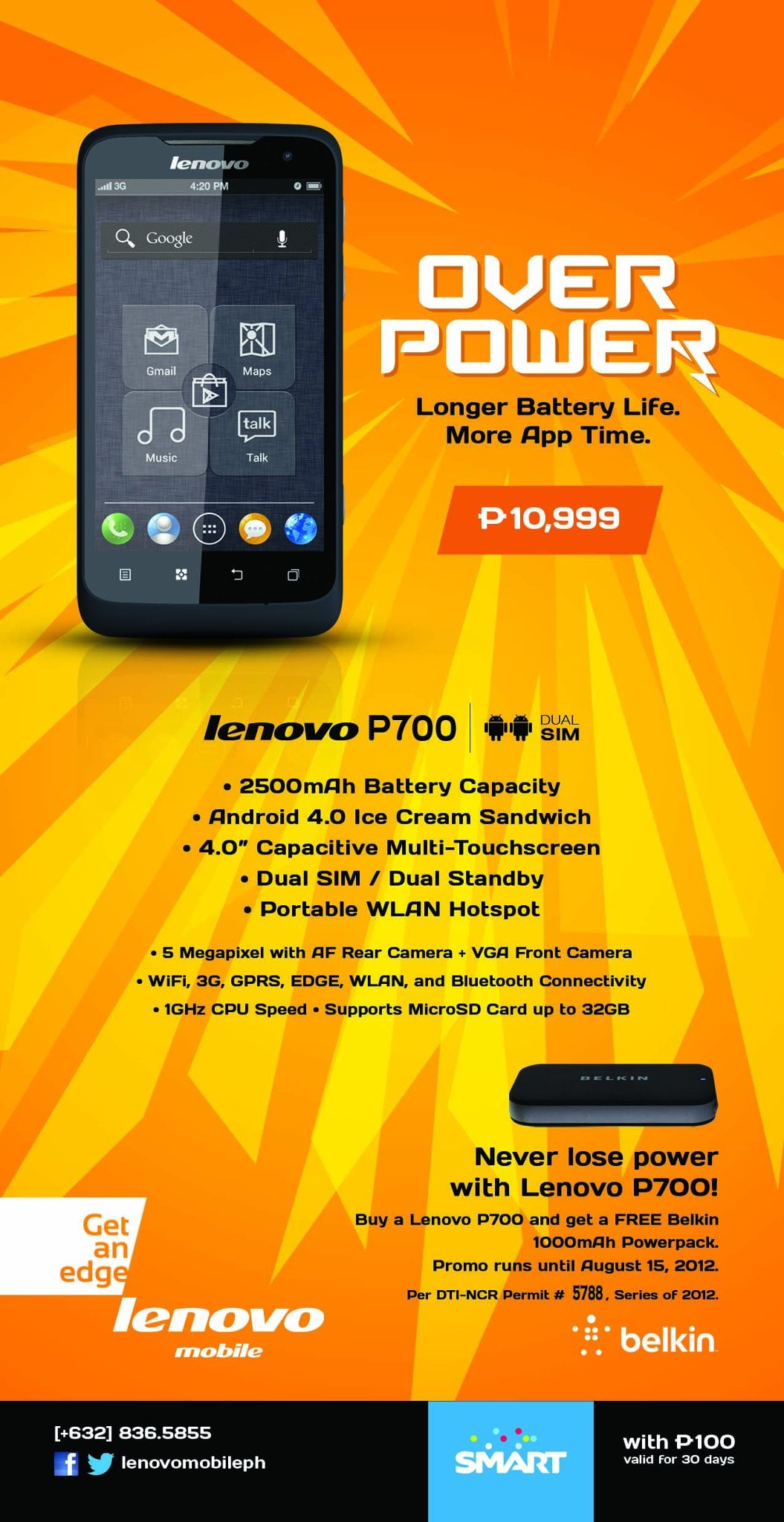 Aside from the phone’s package, it also includes a Belkin 1000mAh Power Pack, a 2GB microSD card, and a Smart Buddy SIM with Php100 of load valid for 30 days! The 2500mAh battery plus the Belkin 1000mAh – will you run out of juice?