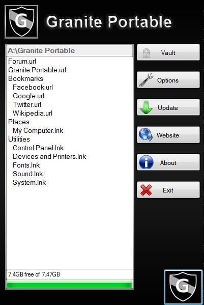 Granite Portable claims itself to be “a rock solid way to transfer your data.” Designed to be simple and efficient, this small, portable app comes with a folder called “Vault” that can only be accessed with a username/password authentication. There you can hide your important files.