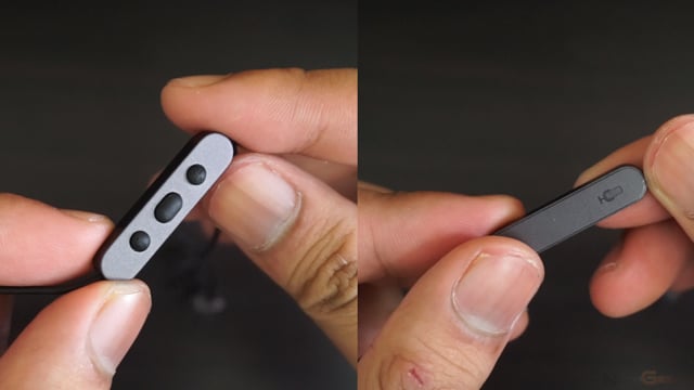 The main cockpit houses the built-in microphone, with a decent quality, but not the best. The sound it captures is a little distorted, but still perfect for hands-free phone calls. We also have here the three control button; two for volume up and down, the other one is for play/pause music, answer/hold/hang up a call — all can be done by rapidly pressing the button at particular repetition. The buttons themselves were also made from premium material; they are constructed in rubber, with satisfying press each time I interact with it.