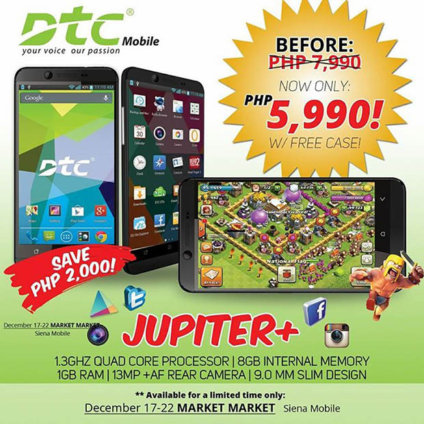 The deal will only last from December 17 to 22 however, so time is limited as to how long you can get the Jupiter+ at the discounted price. Also, it’s only available at SM Market! Market! and other select Metro Manila stores. Still, it’s a deal worth looking into, especially if you haven’t done your Christmas shopping yet. You even get a free case, which will save you the time of hunting for one after you get the DTC Jupiter+.