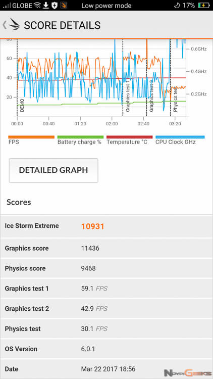 We also have an ultra-fast VOOC charging, a high-resolution, 1080p panel, and a large 400mAh battery. More on this feature and how they perform in our full review. There’s also a 1.9GHz Qualcomm Snapdragon 652 octa-core processor backed by 4GB of RAM. The chipset’s performance in real-world scenarios are yet to be tested, but for now, checkout below the benchmark tests results that I have initially gathered.
